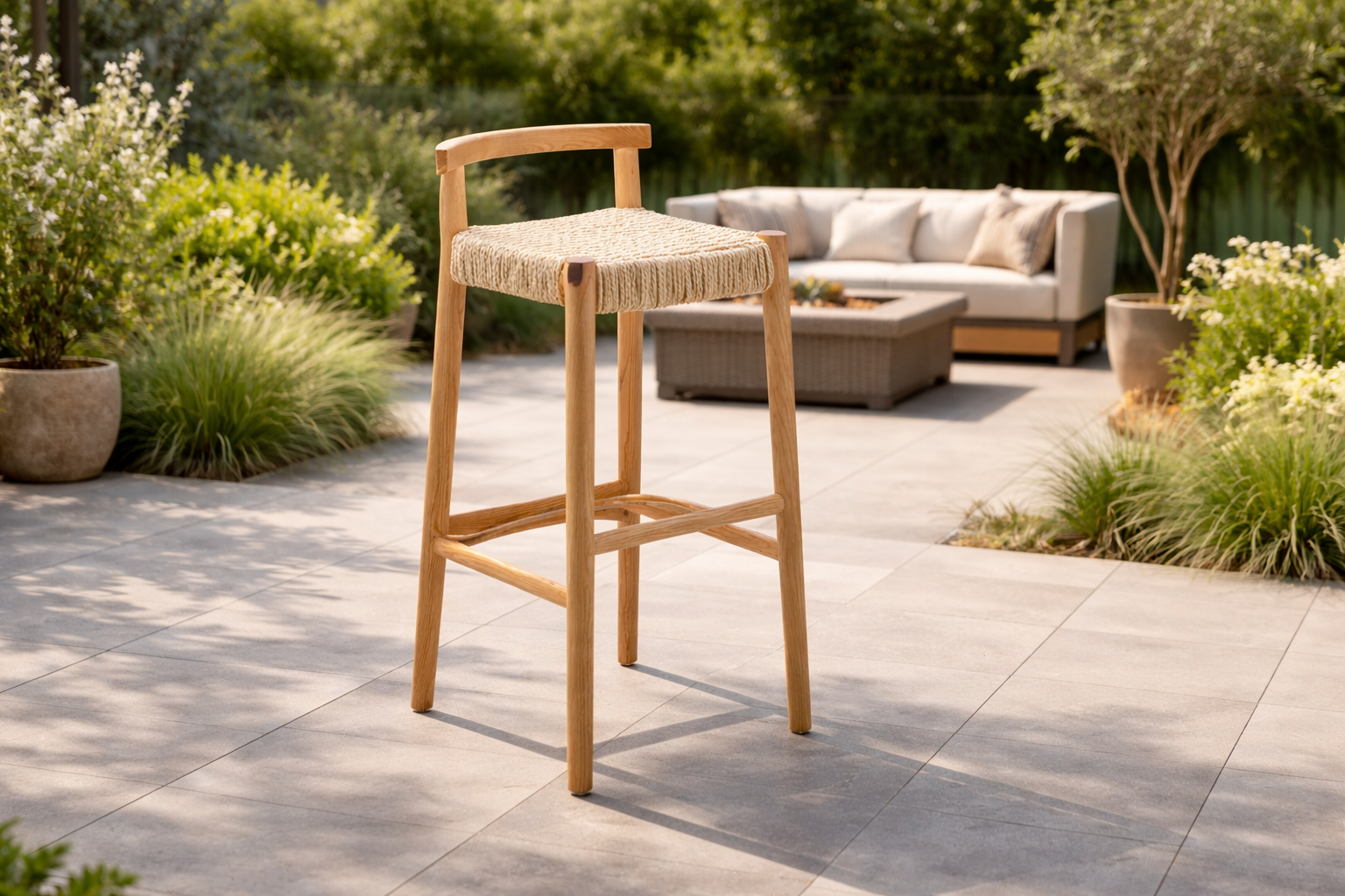 Sillas de jardín madera y cuerda trenzada 52x54x78 cm-marrón-diseño natural para exterior