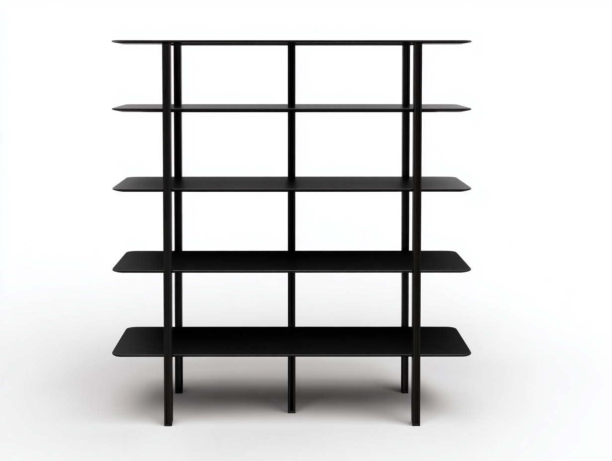 La estructura está fabricada en metal con acabado en color negro que proporciona estabilidad durante el uso cotidiano. Las superficies de los estantes son planas y adecuadas para colocar libros, cajas organizadoras u objetos decorativos. El diseño con líneas rectas aporta una apariencia sencilla que puede integrarse con distintos estilos de interior.